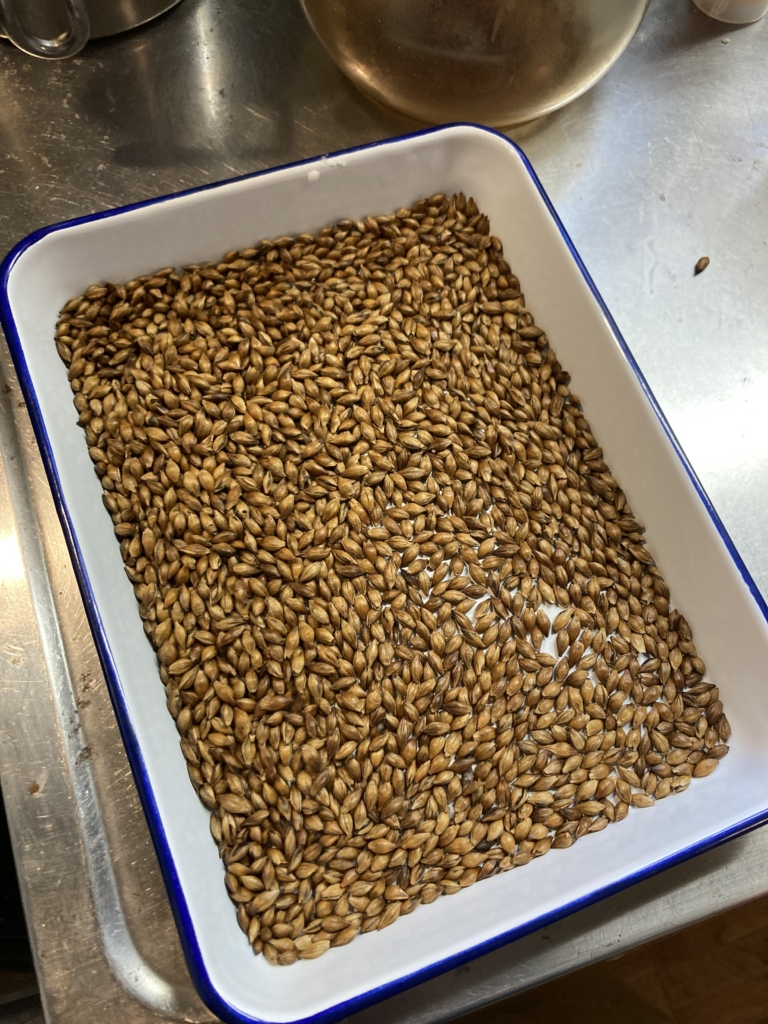 昨年の秋に植えた大麦を収穫して、軒下に干し、自力で脱穀をやり(地道な作業で大変...!)、焙煎してみた。