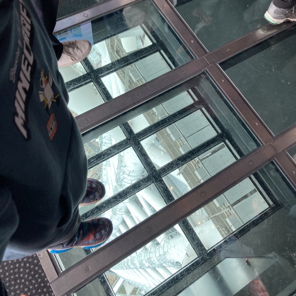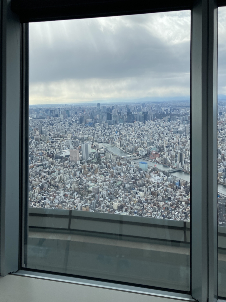 展望台は、たしかに東京タワーに比べ、人や道路が小さく見え、なるほど...という感想。近くで柱を見ると、巨人が作ったような建造物だな、と思った。何かのゲームとコラボしたイベントをやっていて、ゴスロリ?ファッションの若い女子と外国人が入り乱れ、田舎からやってきた子どもには、都会的な刺激があったように思う。
